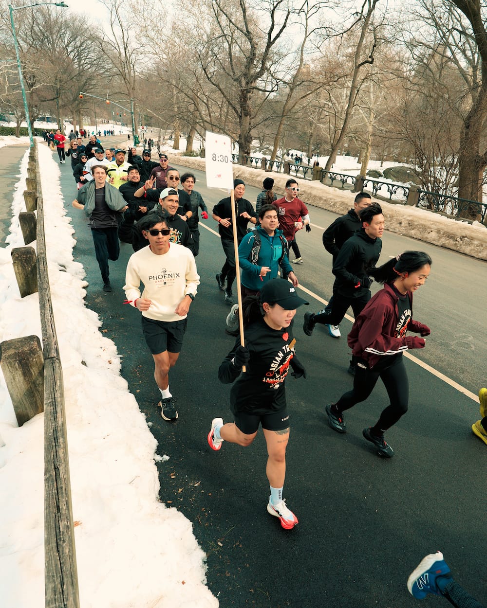 This year's route was unique. After a heavy snowfall and weeks of sub-zero temperatures. The trails in Central Park were still very frosty, icy, and unsafe to run. The route that the pacers took hit three photo locations where horses could be found.